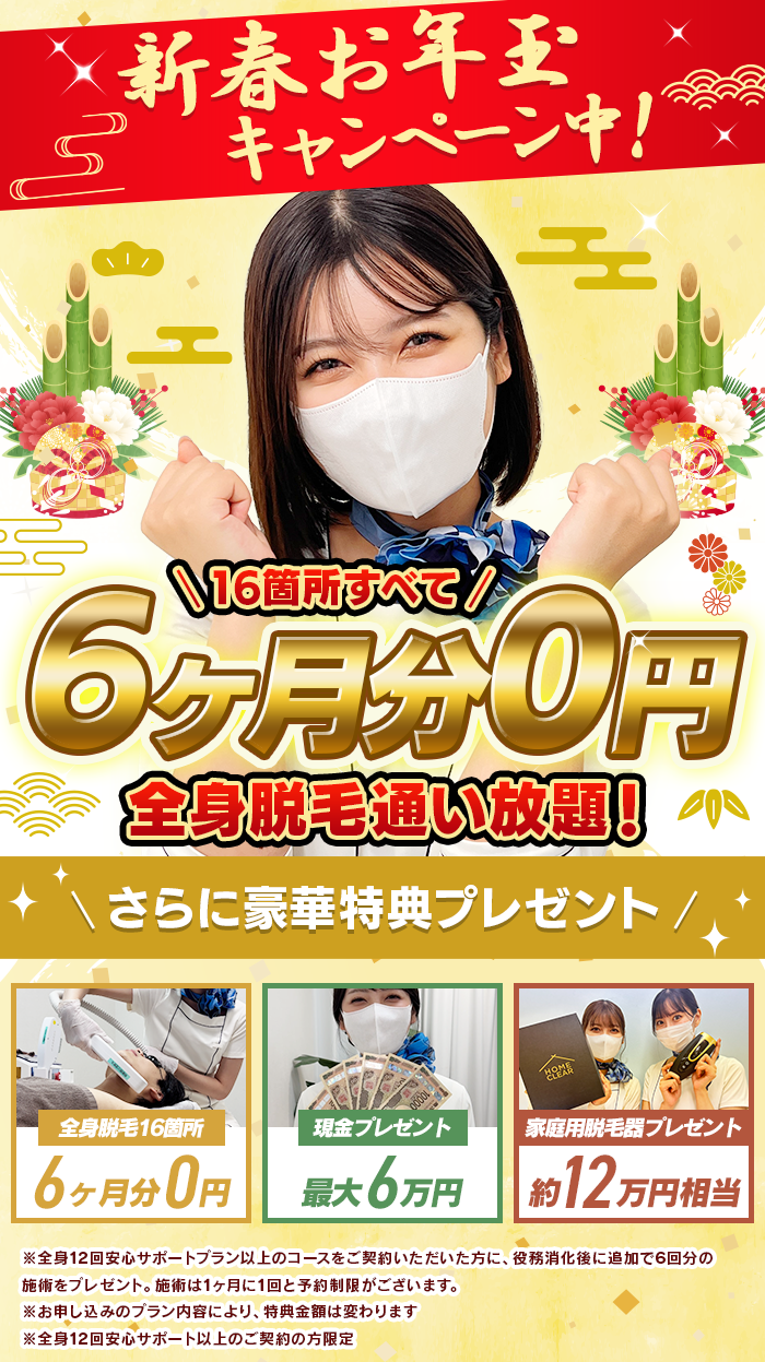 ※全身12回スタンダードプラン以上の契約特典(3万円分)+お友達紹介特典(3万円分)の合計