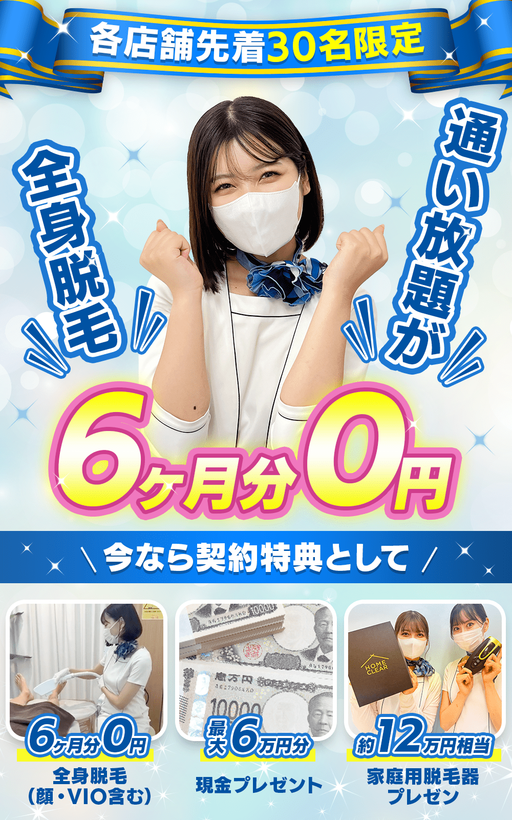 全身脱毛が6ヶ月分0円でできて、